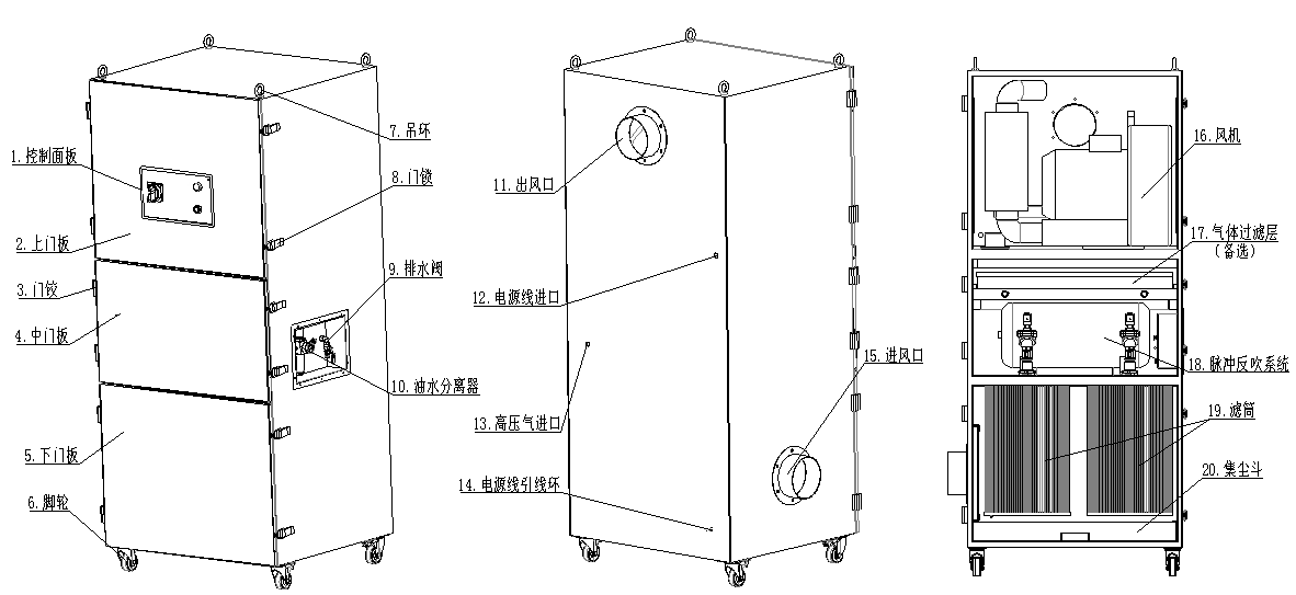SRA-950XP脈沖反吹清灰凈化機高壓風機和三層過濾系統(tǒng)組合而成。