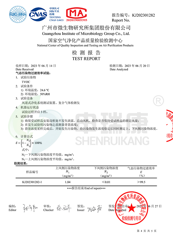 專業檢測報告是申瑞工業煙塵凈化機性能達標的有力佐證,更是企業順利通過環評的“通行證”。該檢測報告明確載明設備各項檢測指標、檢測方法、標準依據及合格結論,可直接作為企業環評申報、環保驗收的核心材料,幫助企業省去繁瑣的檢測流程、縮短環評辦理周期,有效規避因煙塵排放不達標導致的環評失敗、停產整改、罰款等風險,為企業正常生產經營筑牢環保防線。